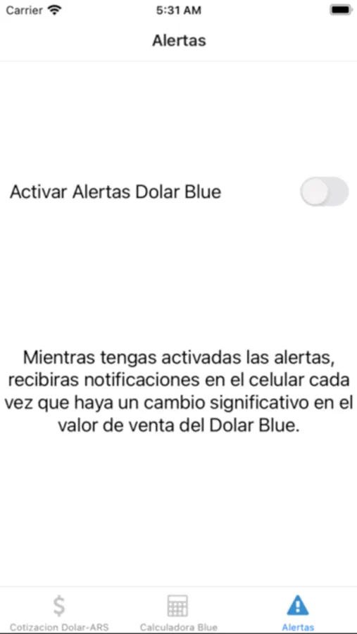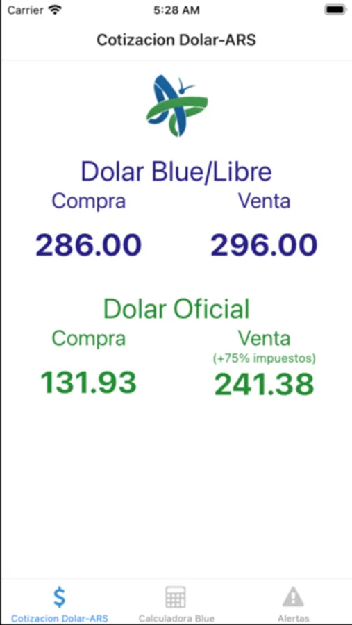 La aplicación tiene la cotización oficial y el dolar blue/libre.