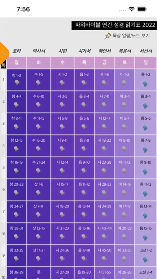 파워바이블을 설치하신 분은 기본적으로 하루 2회(아침-저녁) 메시지를 알람으로 받습니다. 지난 해(2021년) 중순부터 제공하는 이 기능은 성서신학자인 개발자와 함께 성경 1년 1독을 목표로 진행하는 프로그램입니다. 성서신학적 심도로 구성한 주해 묵상을 해당 일자의 ‘통독 구간’에 맞추어 아웃라인으로 제시하면 여러분도 함께 각자 읽어나가도록 유도하는 방식입니다.