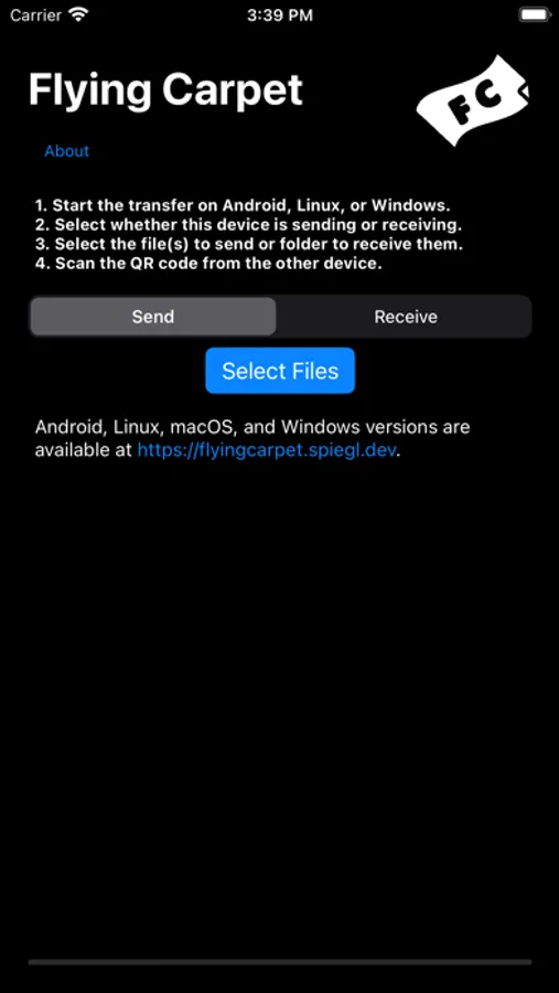 Direct file transfer between iOS, Android, Linux, and Windows with no wireless network or internet connection required: just two devices in close range using ad hoc WiFi. Other versions available for free at https://flyingcarpet.spiegl.dev.