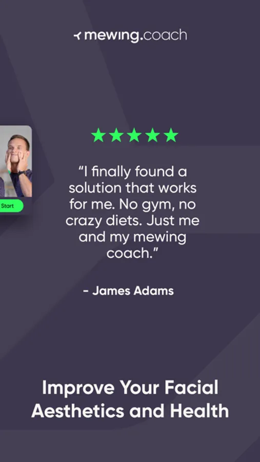Use science-backed methods to make a change in your health and overall appearance. How Mewing.coach will help you? - Personalized mewing training program. Learn how to use mewing to sculpt your face into desired look. - Video guidance. Learn proper mewing technique with step-by-step detailed video exercise guides. - Progress evaluation. Track how your face structure improves over time. - Daily reminders. Make mewing a habit with constant in-app reminders. - Face toning workouts. Identify face zones you need work on and improve it with extra target areas exercises. - Educational content .Get all the information you need to reach your appearance goals in one place.