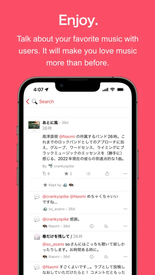 Use your timeline as your BGM, open the app when a song piques your interest, and engage in the conversation.