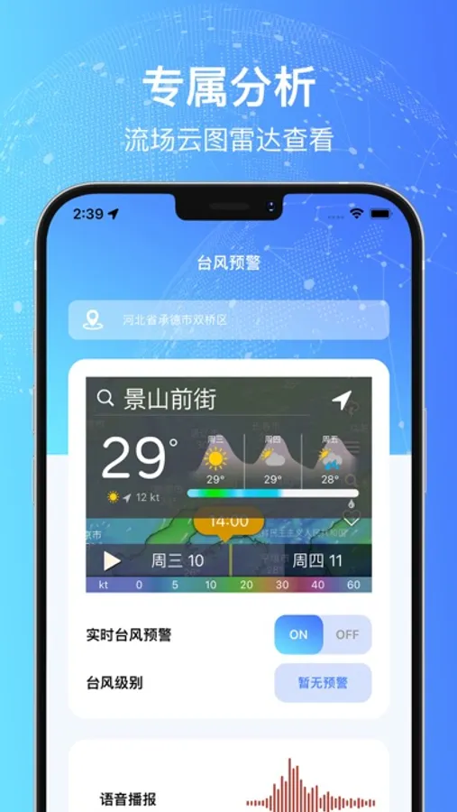1、提供最新、最及时、台风路径和强度预警,关于台风信息及时掌握。