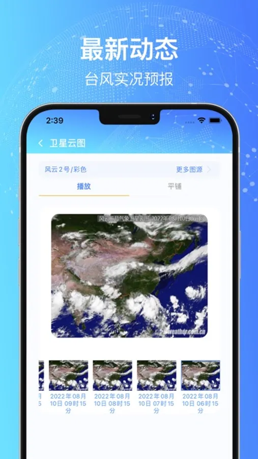 3、实时台风云图与台风雷达图查询,能够直观的了解台风动向。