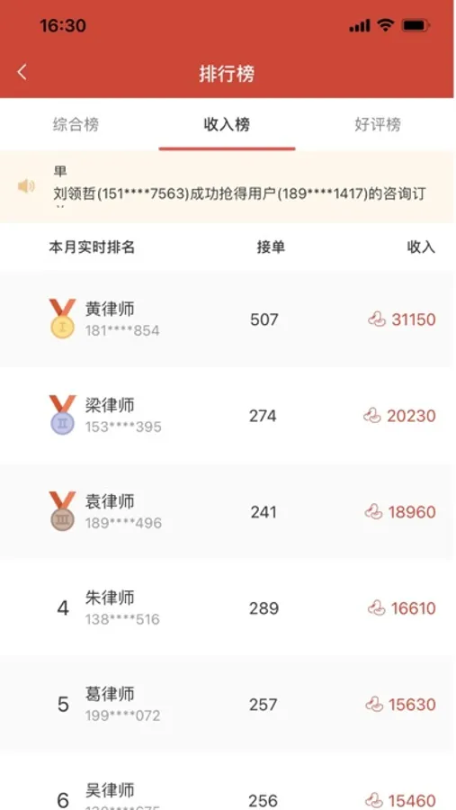 分秒律师-律师端是一个为律师提供电话咨询案源的应用。律师通过该应用能够获取用户发出的法律咨询需求订单,并建立与用户之间的电话联系,帮助用户解决法律咨询问题,同时按照服务时间获取相应的收入。分秒律师能够帮助律师取得更多的咨询业务机会和潜在案源,并提高律师的时间利用率。