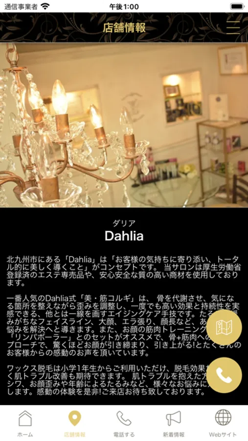 店舗のマップが表示され、地図アプリとも連携しているので、初めてのご来店の時も簡単に見つけることができます。