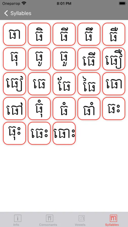 With Khmer ABC you can check how to pronounce consonants, vowels and syllables, which is the most important part for reading.
