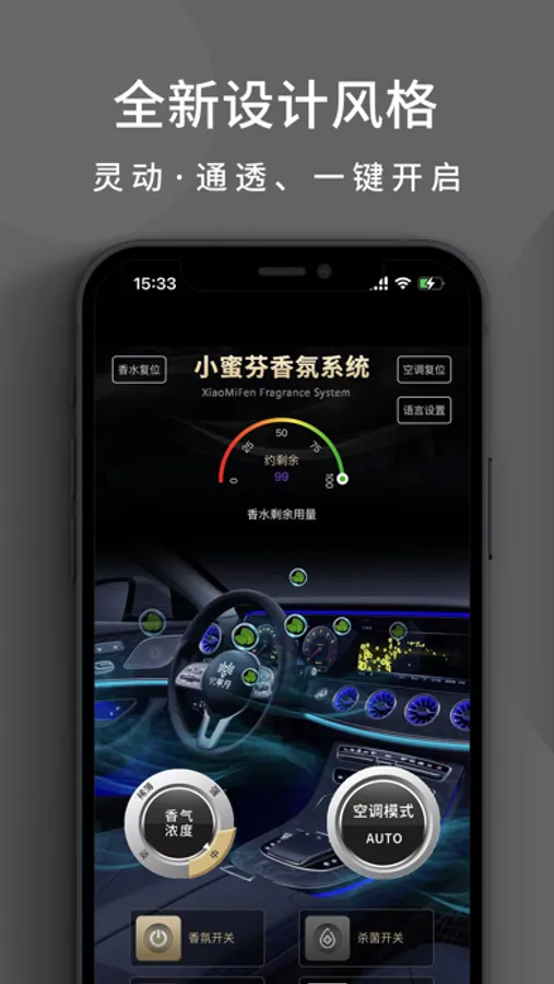 小蜜芬香氛系统是广州香珀蒂汽车用品有限公司为广大车主用户提供车载香氛设备及app客户端控制的全新车载香氛系统。