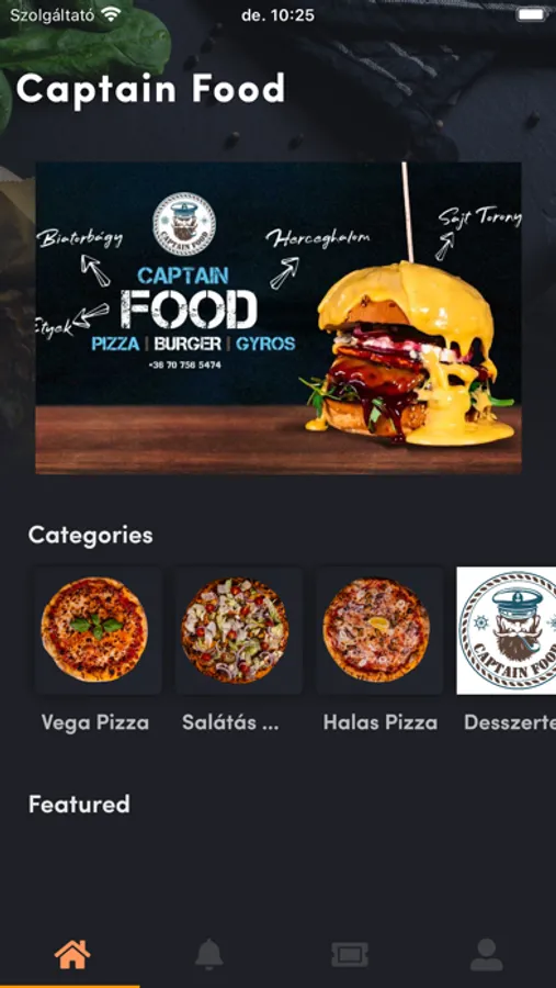 Szeretnél valami finomat a kedvenc éttermedből? Vagy épp azon gondolkoztok, hogy mit ennétek ebédre? A Captain Food küldetése, hogy villámgyorsan teljesítse ezt a vágyadat egy ellenállhatatlan, karakteres ízvilágban. Válaszd ki az applikációnkon belül, hogy mit szeretnél: ételt, italt, hamburgert vagy egy finom pizzát, esetleg a napi menü ajánlatainkból egyet, majd kattints a megrendelés gombra és máris készen vagyunk! Futáraink rövid időn belül értesítést küldenek neked, hogy elindultak a csomagoddal feléd és máris élvezheted a Captian Food gasztronómiai kalandjait!