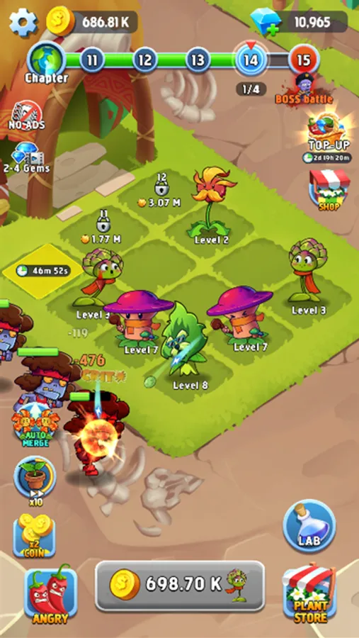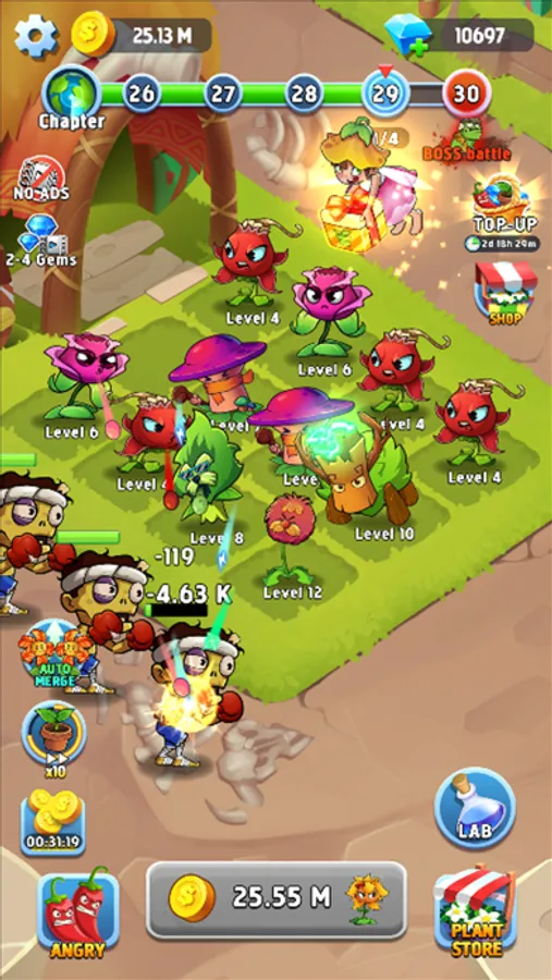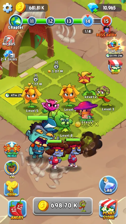 Zombie Farm - Merge Defense is the zombie game genre, adding many interesting and new features. The zombie epidemic appeared around the world, causing people to fear and hide. Scientists have built a special garden to grow genetically modified crops. These plants have special abilities that can fight zombies. The noble mission of genetically modified plants is to protect the garden and prevent zombies from attacking the human bases. Sky garden is an interesting highlight, a magical home defense that gives you a lot of inspiration.
