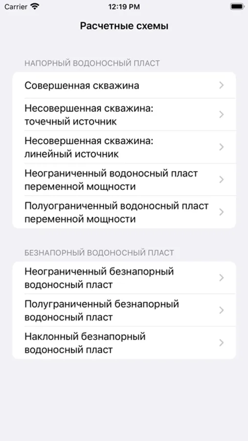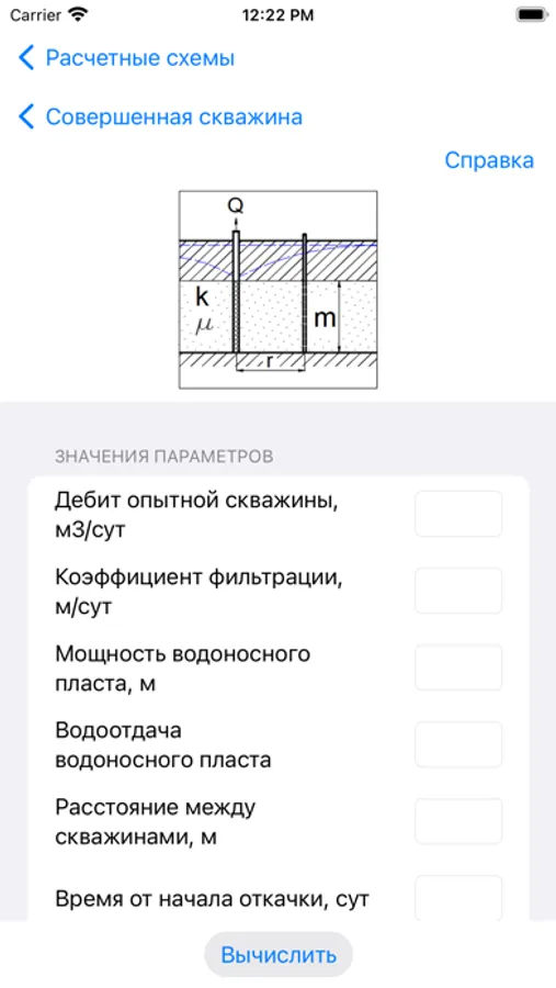 Реализованы различные расчетные схемы откачки подземных вод из изолированного напорного или безнапорного водоносного слоя. Расчет производится по известным аналитическим формулам, приведенным в работах Ф. М. Бочевера, В. М. Шестакова, В. А. Мироненко, Л. Н. Синдаловского.