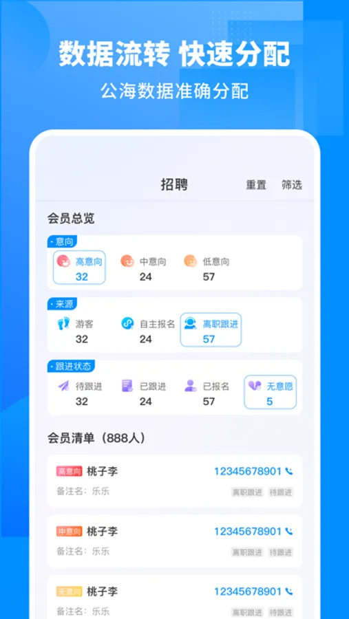 【招聘】:公海分配给招聘员的会员数据进行标识分类