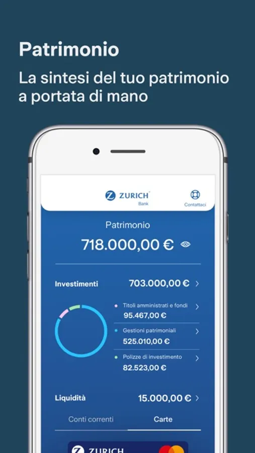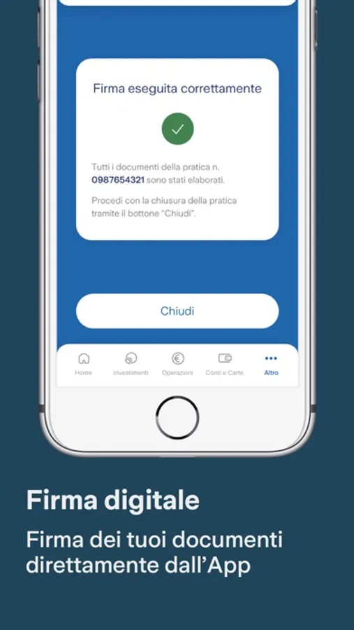Permette una chiara visualizzazione del tuo patrimonio e dell’andamento dei tuoi investimenti, oltre alle tradizionali operazioni bancarie (es. pagamenti, ricariche, blocco carta, …). Il sistema di sicurezza è semplice e incorpora un’autenticazione in-App attraverso codici univoci, personali e sicuri.