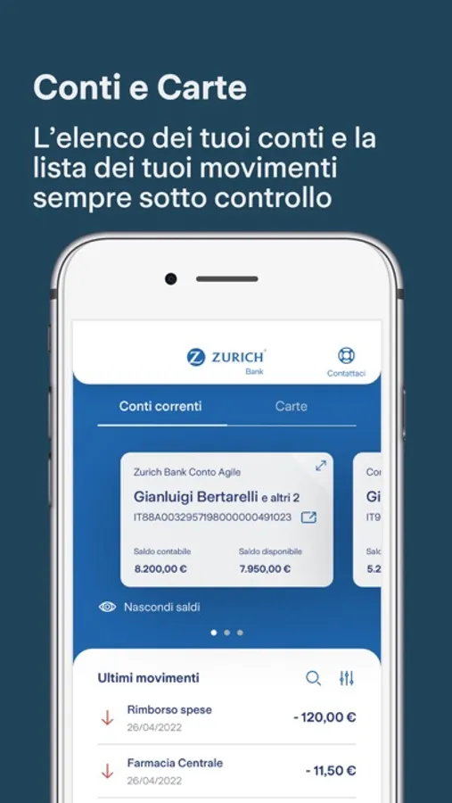 • Visualizzare il saldo dei tuoi conti correnti e lo storico, operazioni e movimenti