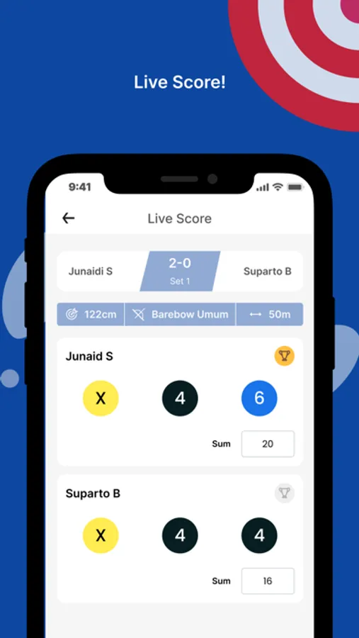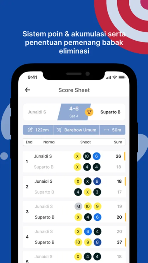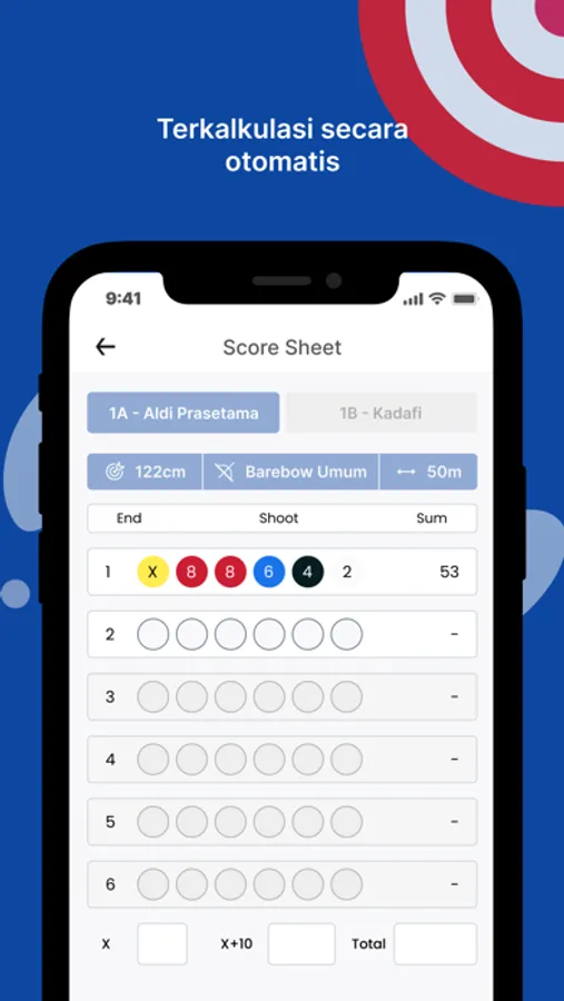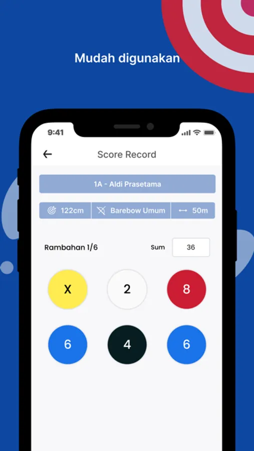 • Selamat tinggal salah hitung & kalkulator! Aplikasi ini membuat perhitungan score panahan lebih cepat karena hasil score sudah terjumlah secara otomatis.