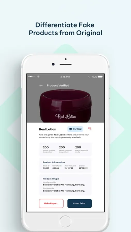 2. What if you bought a product and you suspect it's fake? Or perhaps that body lotion gave you a nasty skin irritation? You can report these experiences right on the app. Tell us where you bought it from, what your experience was, and then attach a picture of the product. That simple. Your report is forwarded to the appropriate authorities and manufacturers.