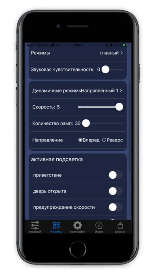 Данное приложение предназначено для управления атмосферной, контурной подсветкой в салоне автомобиля. Доступно множество различных цветов, режимов подсветки, таких как: статичные цвета градиент музыкальный режим так же приложение можно использовать на многих автомобилях со штатной подсветкой, в ближайшем будущем появится АКТИВНАЯ подсветка, которая будет реагировать на множество функций. например: при включении поворотника, будет мигать сторона направления движения подсказки светом при парковке задним ходом не пристегнутый ремень и многое другое! так же важным в этом приложении является возможность управления системой ароматизации салона. это очень популярная и приятная функция, которая встречается только в очень дорогих автомобилях, но теперь это доступно всем! не забывайте обновлять приложение, дальше будет интереснее!