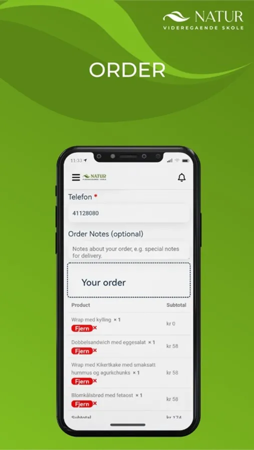 En matbestillingsapp for elever og lærere ved Natur Videregående skole. Du må være registrert på forhånd for å bestille.
