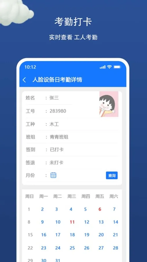 对于工地劳务人员进行系统化管理,查看考勤数据。
