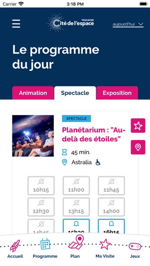Découvrez les expositions et consultez les horaires des animations et spectacles du jour.