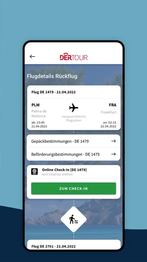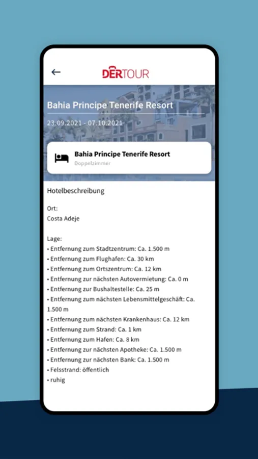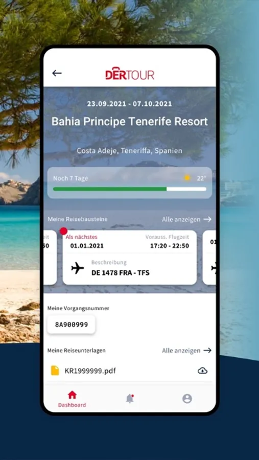 Behalten Sie den Überblick: In der kostenfreien Mein DERTOUR App können Sie Ihre vergangenen und aktuellen DERTOUR-Buchungen jederzeit einsehen. Die Reisevorbereitung wird dank Wetterübersicht, Checklisten und hilfreichen Informationen zur Buchung erleichtert.