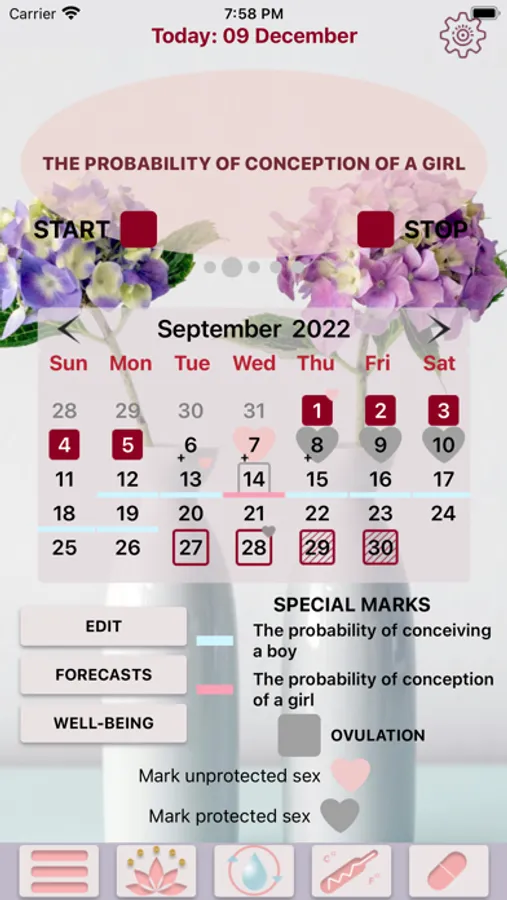 This Cycle Calendar is truly unique because it has not only three calendars (for your cycle control, for pregnancy planning, and pregnancy calendar). It helps to determine the fertile days of the month, so you can either achieve or avoid pregnancy. This application is absolutely flexible and unique. Adapts to your cycle, rhythm, lifestyle and ovulation! It is truly your partner for life. Helps you to manage your water balance, monitor your health, helps you to follow your meditation times, reminds you to take your medications. Also it has the Basal Temperature module for very precise forecasts.