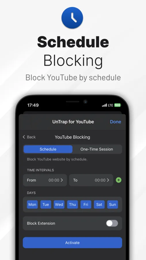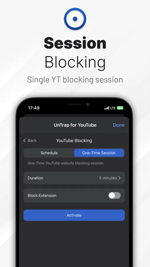 Furthermore, UnTrap offers an array of supplementary features, including Password Protection, Scheduled Sessions, Focus Sessions, Channel and Video Filters, and more.