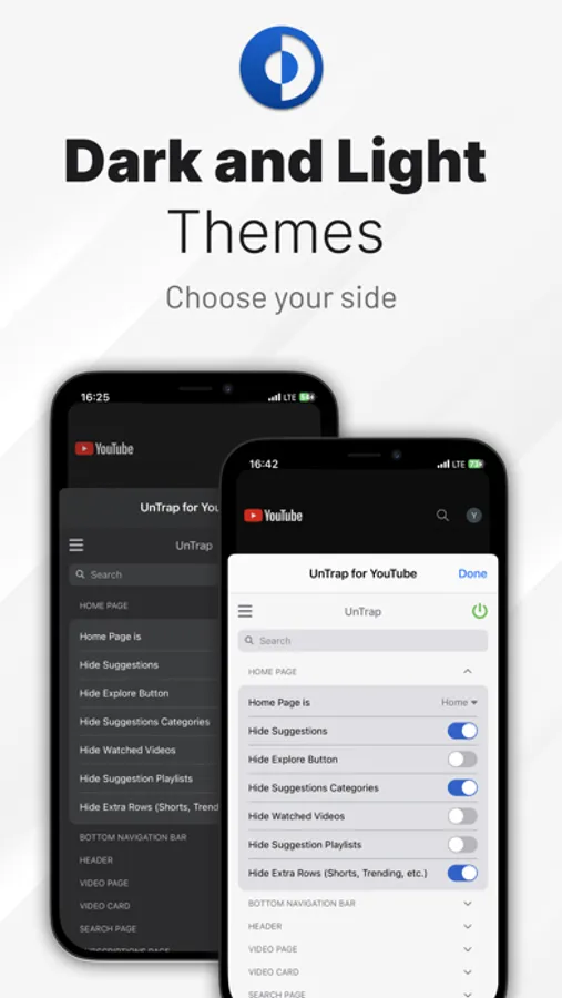 With over 117+ customization options, UnTrap empowers you to take control of your YouTube journey. It allows you to personalize your viewing environment according to your preferences and helps you reclaim your YouTube experience.