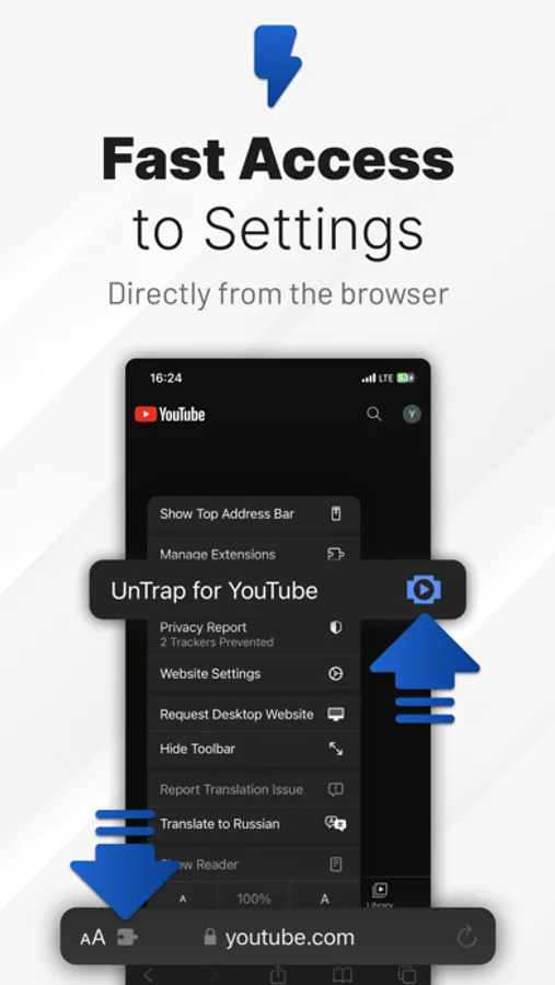 Please note: UnTrap exclusively functions with the Safari browser on iPhone, iPad, and Mac devices and is not compatible with the YouTube app.