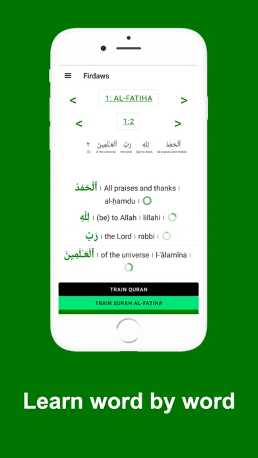 Quran Firdaws is an application that allows you to learn Arabic for the Quran, while having fun.
