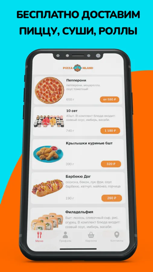 Приложение "Пицца Айленд" - это удобный и быстрый способ онлайн заказа пиццы, суши, роллов, хот-догов с доставкой на дом или в офис.