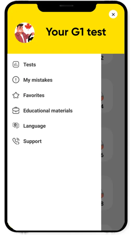 Our application 'G1 Practice driver's test Ontario 2023 Canada' helps to pass the written knowledge test G1 in your native language in Ontario.