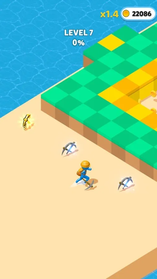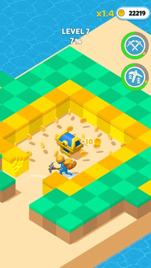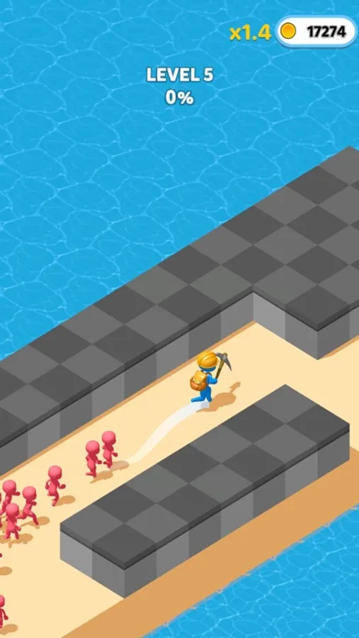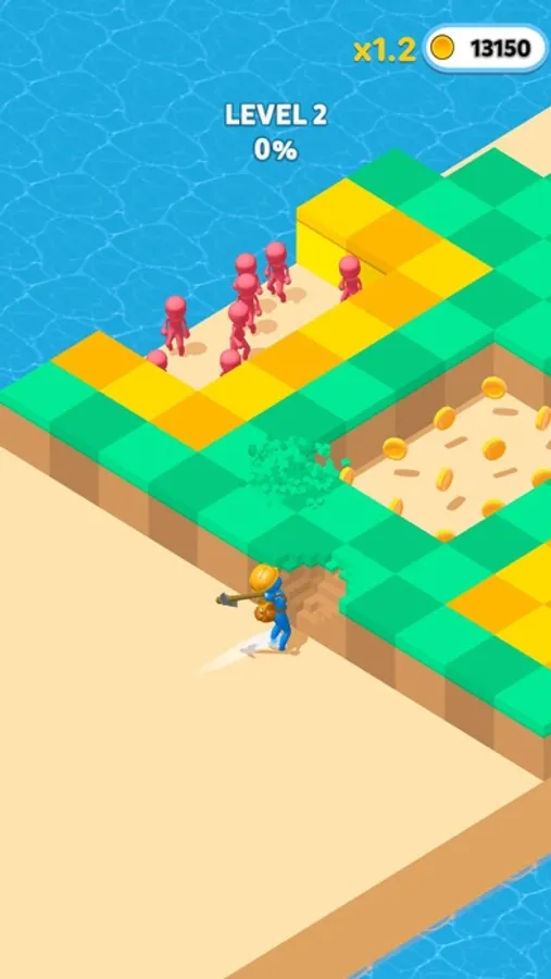 Mine the blocks to win money in order to upgrade your tools and the gold you'll get! But beware of the red enemies, they will try to stop you in your journey!