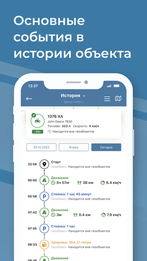— отслеживать любые изменения скорости движения, температуры, уровня топлива т.д.;