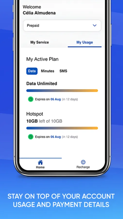 • Instantly check the data, call, and SMS usage of your mobile services to keep track of your plan.