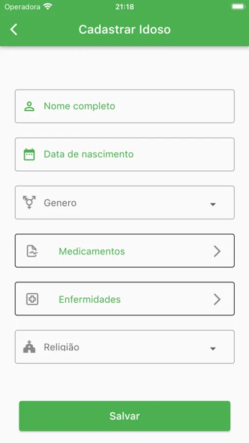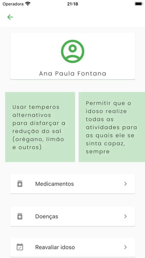 - O App permite o armazenamento de dados de mais de um idoso cuidado.