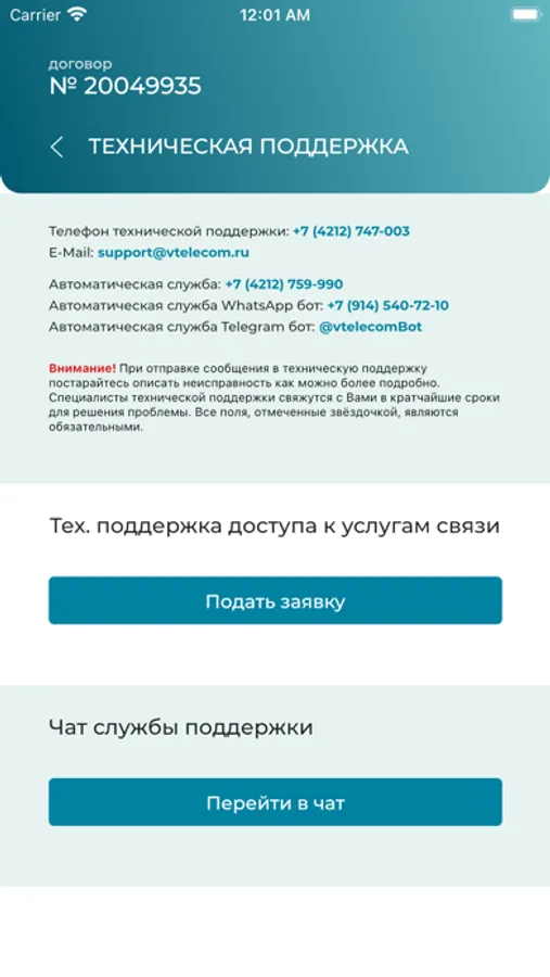 Если появились вопросы по качеству предоставления услуг связи, в приложении есть