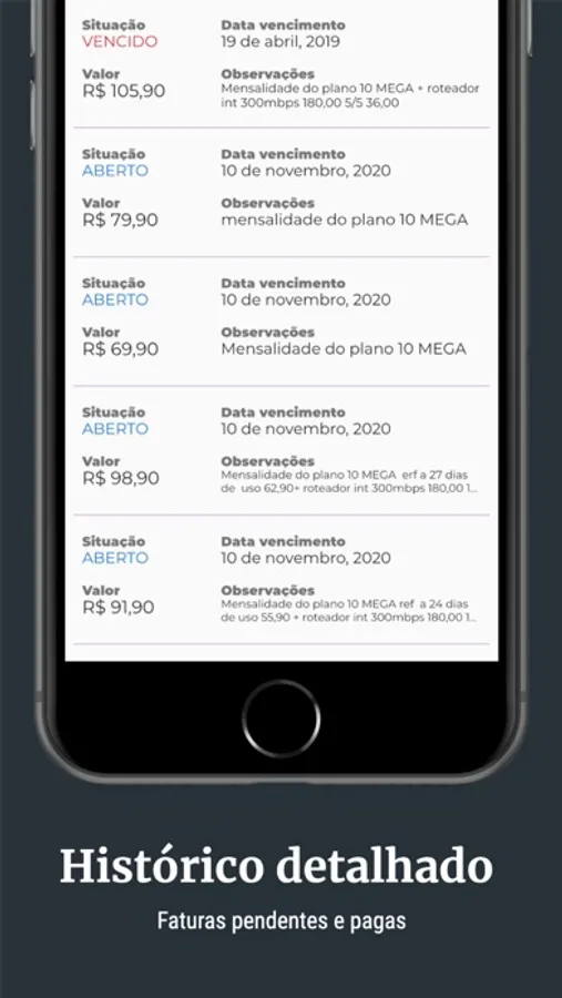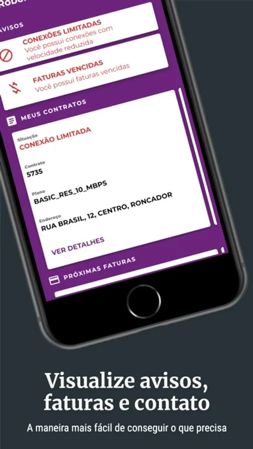 - notificações sobre sua conexão e boletos