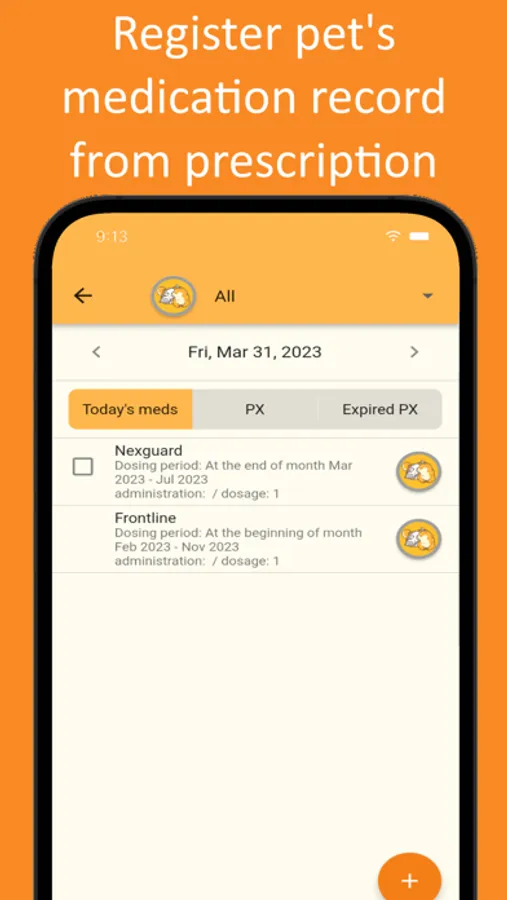 Register prescription information and keep a record of your pet's medication on the calendar.