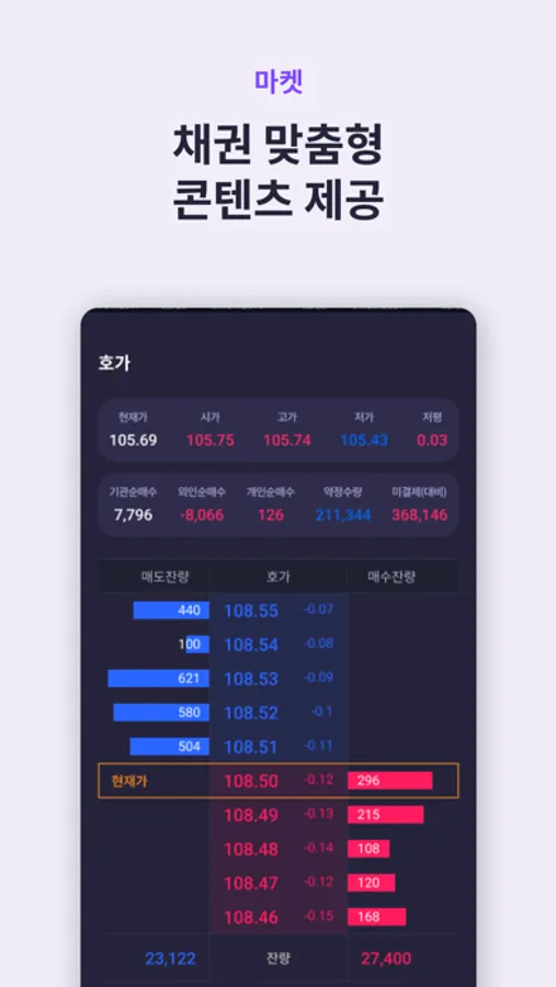 - 금리선물, 국채호가, SWAP 등 채권 맞춤형 콘텐츠 제공
