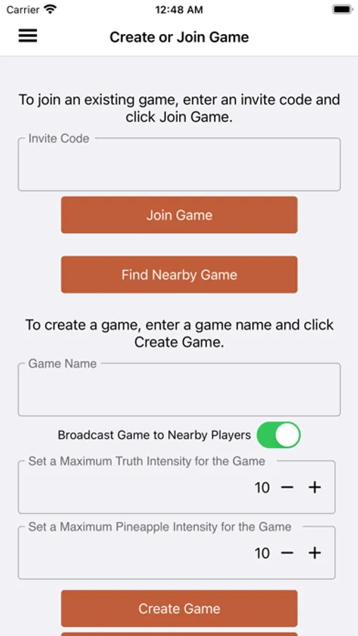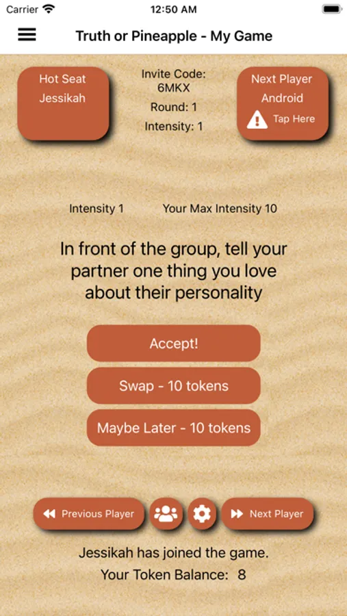 Ever played truth or dare with a bunch of people and been asked to do things you were not comfortable doing? Us too, that’s why we created Truth or Pineapple. Once you complete a quick interview of preferences, the game knows which activities or other players you are interested in. The game engine seeks to give you questions and activities to make your preferences a reality.
