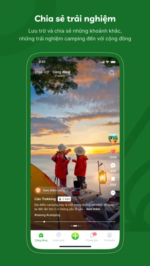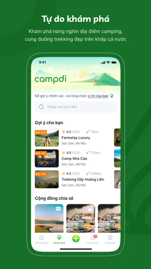 Campdi là nơi chia sẻ kinh nghiệm, trải nghiệm, kết nối từ cộng động yêu thích hoạt động cắm trại, leo núi, chạy bộ, chèo thuyền, đạp xe, câu cá ... dưới dạng hình ảnh, clip và không giới hạn dung lượng chia sẻ
