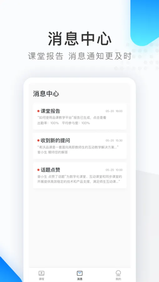 The interactive question answering function in class meets the real-time feedback of teaching. After class, one-click acquisition of learning situation data and non-inductive attendance data provides multi-dimensional teaching process information.