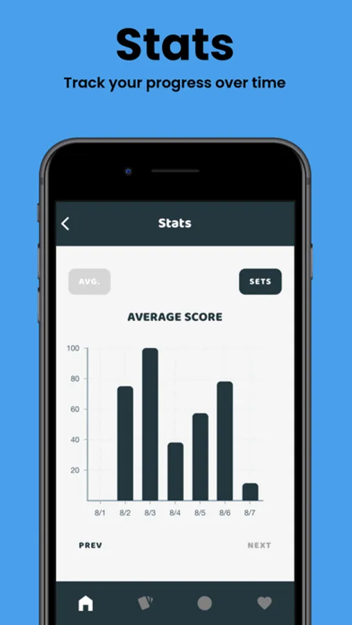 ‣ Stats: Track how well you do over time and see your progress!