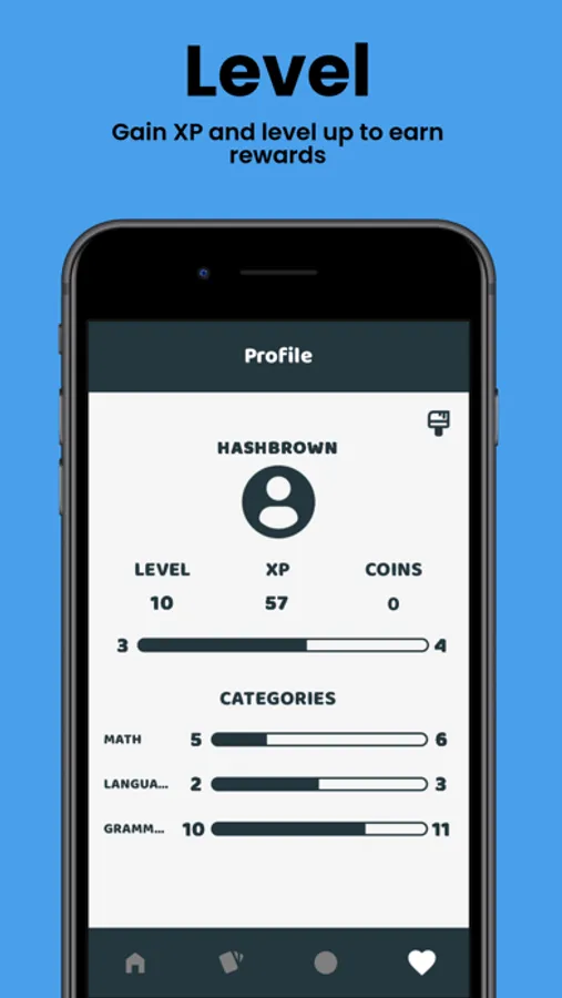 ‣ Level Up System: As you practice, gain XP to level up your categories!