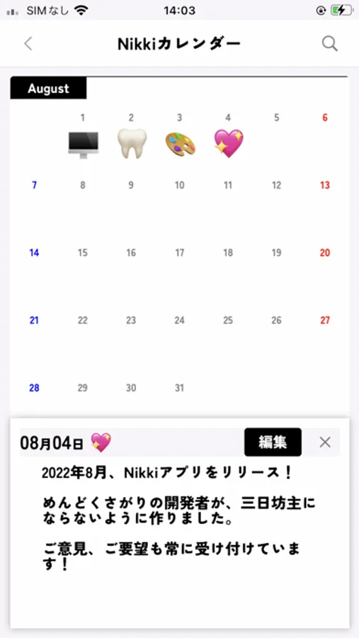 ・1日ごとに絵文字を付けて、カレンダーで見返すことができます。