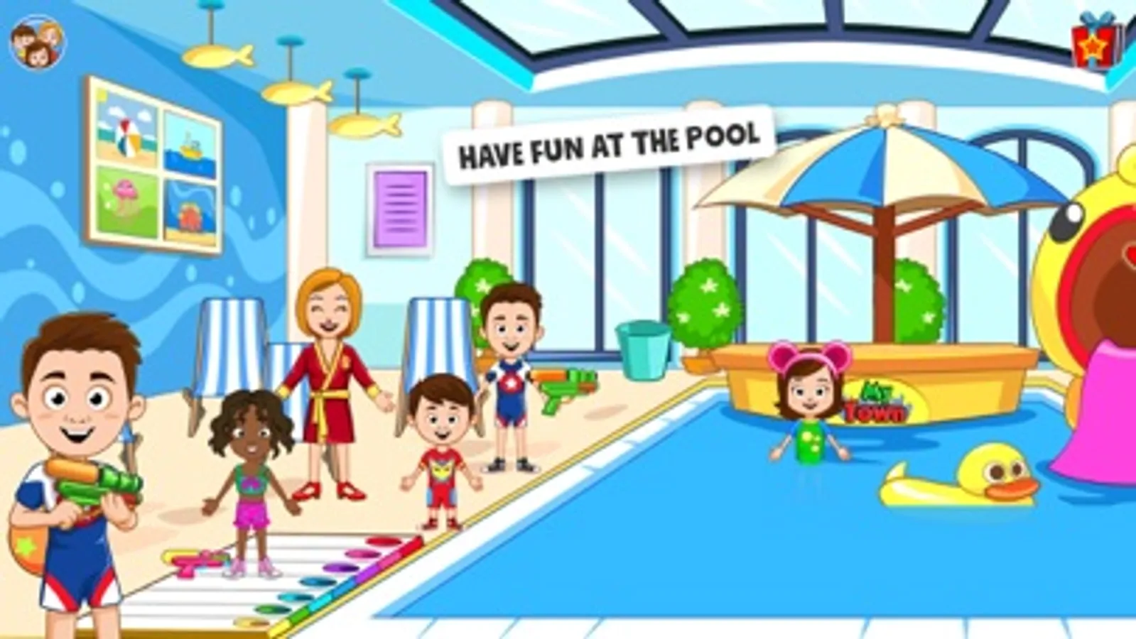 Visit a pool and relax! Swim, order drinks and enjoy your vacation! Download the game today and see why My Town games are the best dollhouse games in the world!