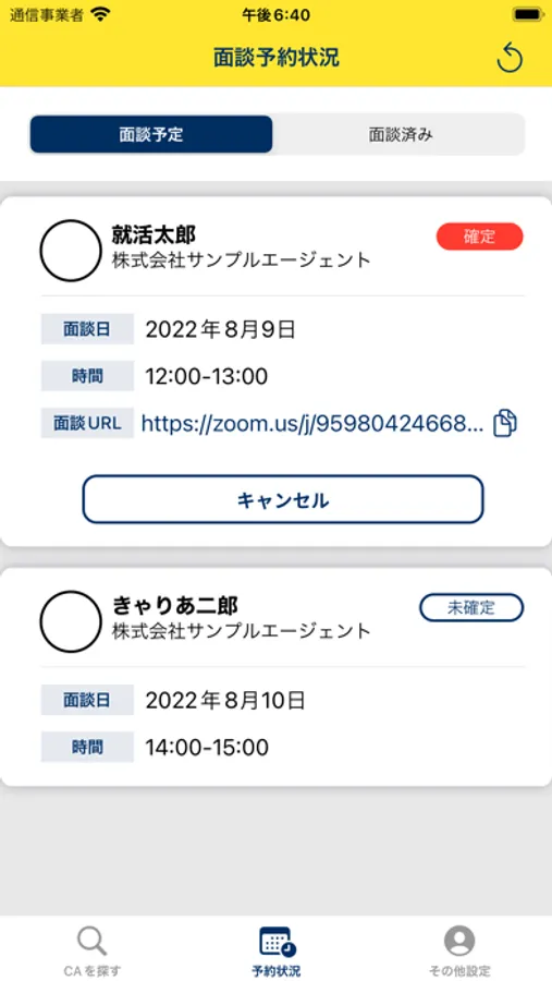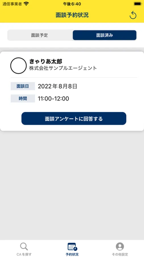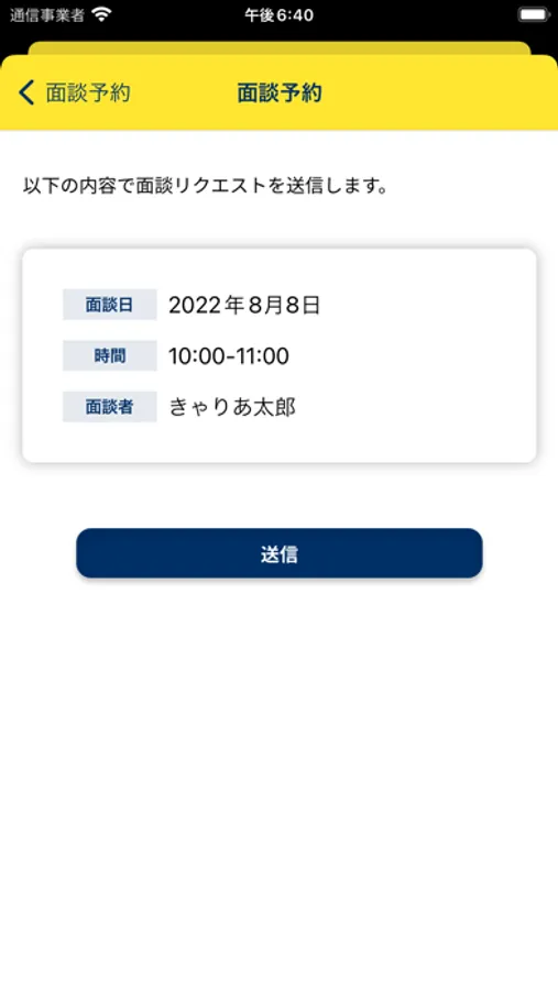 面談したい日程のリクエストをアドバイザーに送って承認されたら面談予約が完了します。
