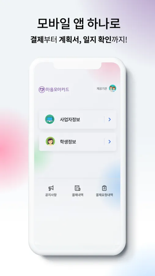 마음모아카드 제공기관 전용 어플로 QR/바코드 결제 등 쉽고 간편하게 결제할 수 있습니다.