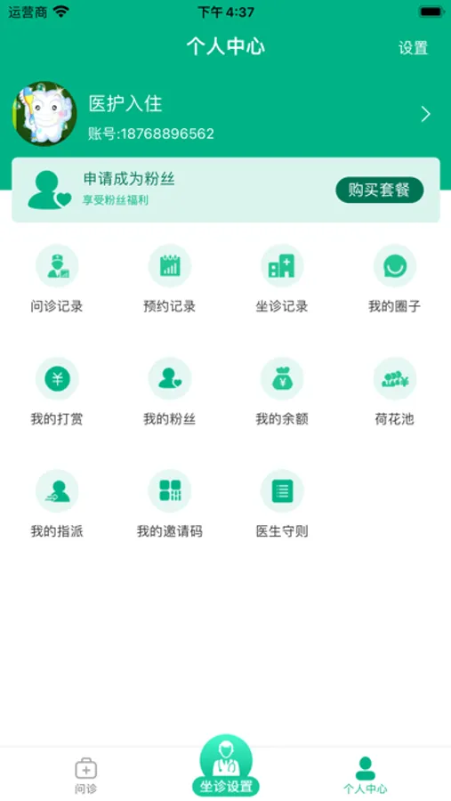 口腔医生利用闲暇时光通过牙荷医护端在线为客户提供专业的口腔知识。顾客可以针对口腔医护提供的服务进行打赏,来增加口腔医生的收益和知名度。医生也可以通过牙荷医护端平台寻找并入驻心仪的口腔门诊。并通过牙荷医护平台接受通知,处理预约订单。