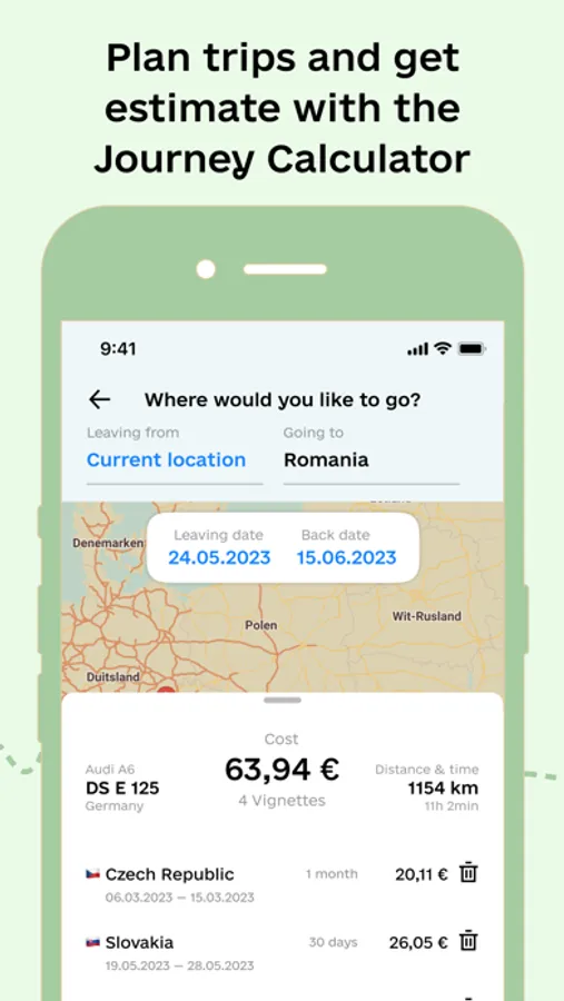 Our app not only makes it easy for you to stay compliant, but it also makes it easier to plan the whole route of your journey. Plus it's supported in four languages including Ukrainian, German, Czech and English, and customer support is available in the same languages, you can be sure that you have all the information you need to make your journey a success.